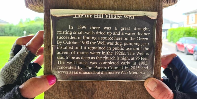 Well, well, well! Actually it is not a zimmer frame but the supporting frame for the pump handle at Ide Hill’s old well, as shown on this plaque