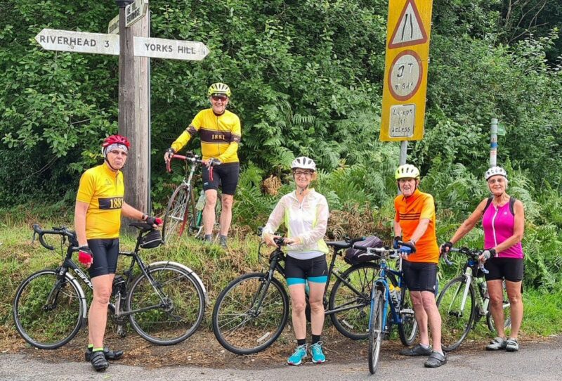 Earlier in our ride along the Pilgrims Way we had crossed over Westerham Hill, the very steep hill which leads upto Biggin Hill and onwards to London. This hill was the venue for the very first Hill Climb race started in 1887 by Catford C.C. In later years due to modern day traffic, their challenging hill climb was moved to York Hill, the top of which comes out on Goathurst Common. And just to prove it!