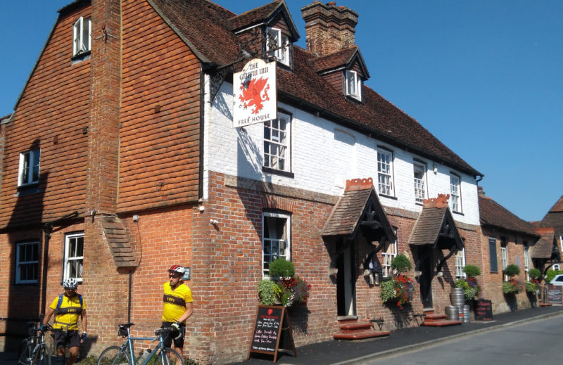 The Eastbourne Ride has a reputation for finding closed cafes and a medical emergency at Mrs T’s left us gasping. However almost next door was The Griffin ‘open 8am till late 365 days a year’. It was, it had a garden, it had tea, coffee but alas, no cake!