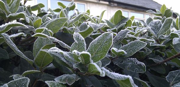 A very bright and crisp morning with leaves outside 501 Brighton Road well frosted.