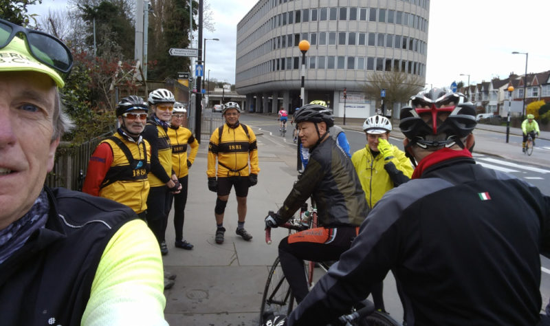 Around ten of us started (there’s piston leg Frank just crossing the zebra crossing). We also welcomed George again for his third ride. Good to hear you are wishing to join.