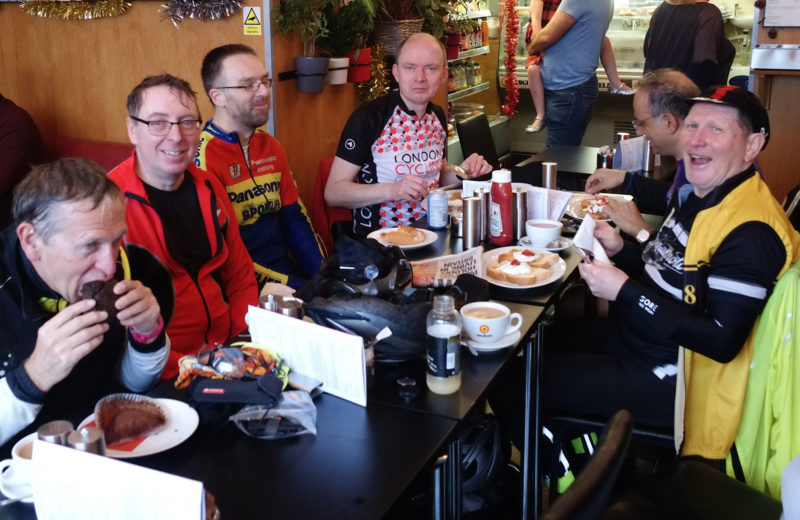 An impressive turnout of eight characters left Purley and meandered off to Woldingham where Tom V had a variation route in mind which was thoroughly researched on Google Earth and maps. Unfortunately part of the route was yet to be tarmaced so some of the brave members resorted to carrying their bikes.