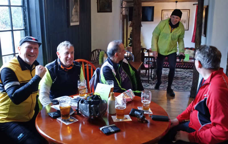 Here was where Austin abandoned ship leaving the final five to turn back early to the planned Pub. We were a bit soggy and I took pity on Stuart whose eyes lit up when we got to the Griffin (formerly the Brickmakers Arms) at Crowhurst Lane End. As the first pint went down Jeremy sailed into sight and duly joined us commenting about how the club was not sticking to any of the published destinations. He had made it to the Bluebell Cafe in East Grinstead and was heading to the Fox and Hounds at Tilburstow.