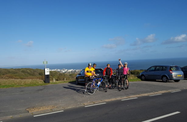 Sadly the road after Birling Gap was blocked to even us cyclists and we were sent back by a chirpy guy in orange jacket who thought we weren’t riding Halfords bikes so shouldn’t ride cross country. A final stop near Beachy Head gave us a view of Eastbourne before we headed down the glorious freewheel to Eastbourne Station.
