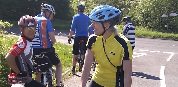 We went out via Warlingham and then Jeremy’s favourite diversion via Hesiers Hill to avoid the newly re-surfaced and gravel laden Limpsfield Road to Botley where we were caught by a lady latecomer …