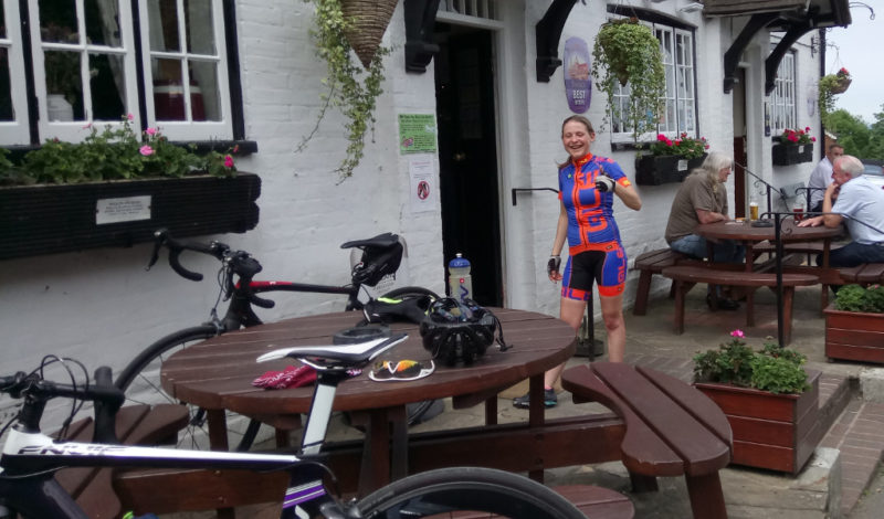 Jeremy warned us that we were not going direct to Turners Hill. Very prophetic. Later I noticed the 7th Purley [All Saints] Scout vehicle. Not Tom’s as his is the 9th Purley! I was trying to keep up and pass now and again the young tearaways Agnes and Ajay. Unfortunately Agnes and I got ahead of the group near Horsted Keynes up to a cross roads. A local said two ways to Turners Hill, easy and difficult ie the way we came. I went back down the hill to find Agnes who was by the hikers seen earlier. It was certainly a hilly route. At Turners Hill green that I have been to many times there was no sign of the Red Lion. A cyclist on the green kindly found it in a tucked away side lane. We searched the pub and grounds no sign of anyone!