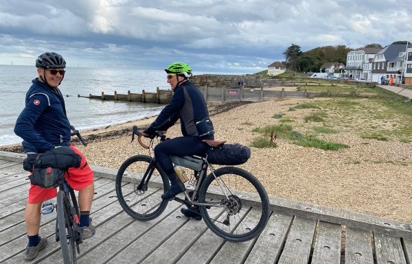 We hit the coast at Whitstable and followed the Viking Trail to Reculver, stopping at Herne Bay for lunch where they allowed us to take bikes into the restaurant. At Reculver we cut the corner on the shorter route to Cliffs End on the south coast of Kent.