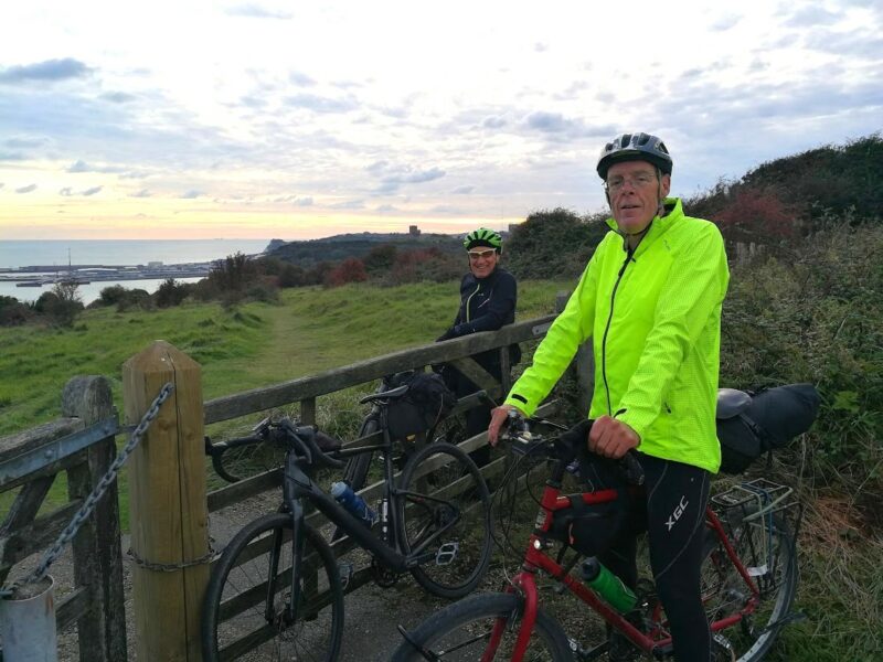 Looking at my journal now, I’m not sure that it really reflects all the highlights or experiences. Dover castle in the evening light; trying to ride through deep sand on a track across a golf course on Monday; another golf course bridleway on Tuesday high above Hythe; the stark beauty of Dungeness community and the power station; the gorgeous weather and wind pushing us along the front; more beauty at Rye Harbour and river; the coast path through the extensive Rye Harbour Nature Reserve; the welcoming pint at the New Flying Horse at the end in Wye.