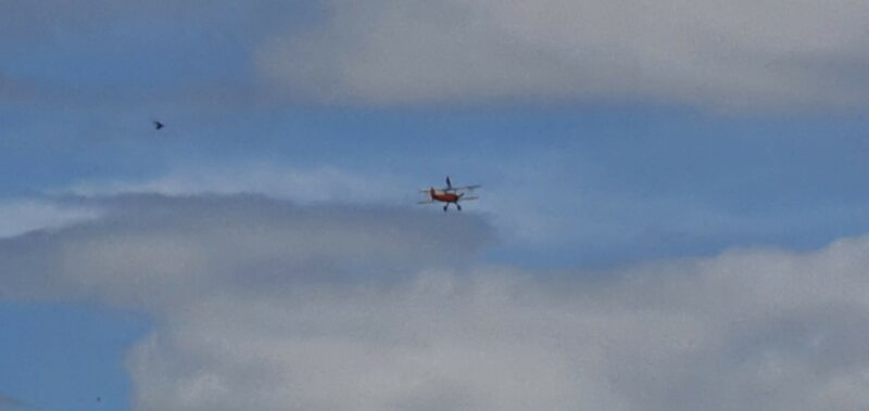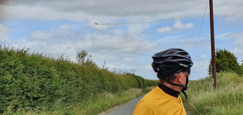 On route to Tadcaster we stopped at a gateway to a wheat field to watch a By-Plane doing aerial stunts with someone standing on the wing. As the plane turned towards us John said, “Let’s run into this cornfield, this is like the film ‘North by Northwest’ with Cary Grant”, but this remark went over the heads of the others, unlike the plane which did not – it turned around.