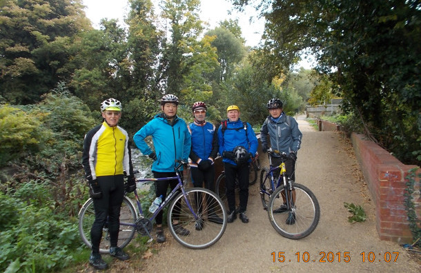 Today’s ride was along the Wandle Trail via the Woodcote Estate built between the world wars to give returning forces land of the own. We then rode through Carshalton Park and Carshalton Ponds on the new cycle routes. Carshalton ponds is one of the sources of the Wandle. We were now on the Wandle Trail at Butter Hill. We rode on passed Winderness Island, across the road at Hackbridge and followed the route passed Culvers Island. We again crossed the main road at Willow Lane, this part of the trail is newly opened for cycling and walking due to a lottery grant. At this part Barry had a front wheel puncture. It was a lovely spot to have one as the view of the river was great.
