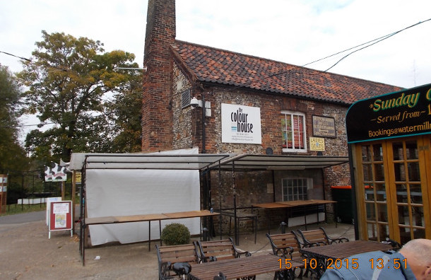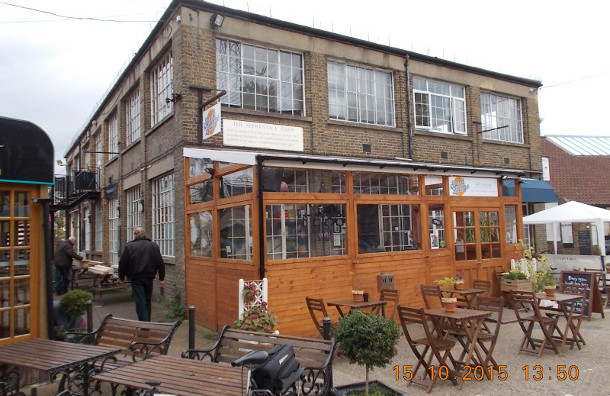 After crossing the road again we picked up a new part of the trail that bought us out at Plough Lane. Once on Plough Lane we rode up through Wimbledon Village and onto the common which is where Tom had an exploding front tyre. At this point we decided on a change of lunch stop so went to the Windmill CafĂ© on the common for lunch and to do a quick fix on Tom’s tyre. Barry patched up the tyre using plasic bags. After lunch we rode back into the village to get a new tyre for Tom’s bike after the shop gave Tom the wrong size tyre, we managed to fit the right size one after a while and carried on are way back down the trail the way we came. We stopped for coffee on the way back at Merton Abbey Mills once home to Liberty’s workshops, now home to a pub, craft shops,a pottery, and a number of good food shops. Once refreshed we set of back along the trail. We finished the ride in Beddington Park.