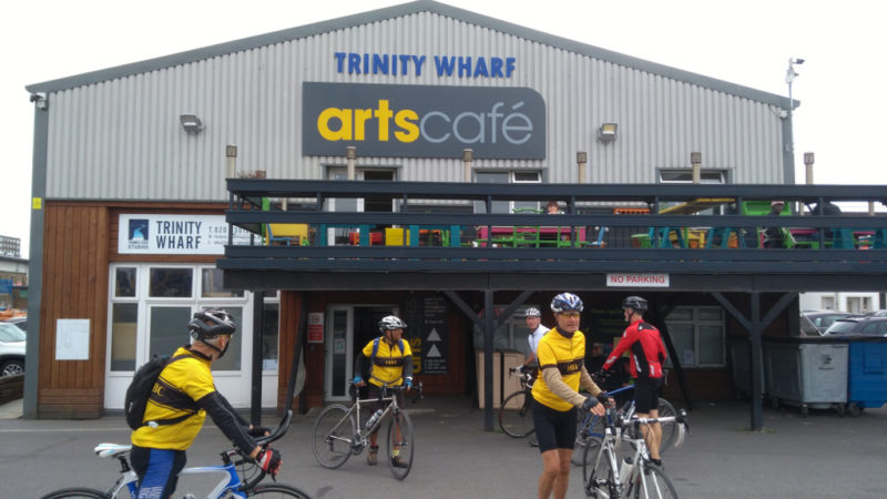 Time had moved on – around 3pm and time for tea and cake. We stumbled upon this cafe in an industrial park facing the river. But it was both good, inexpensive and had multi-storey bike parking: