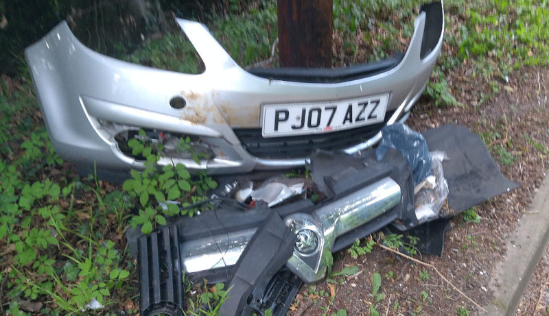 Finally on the ascent at Clarkes Lane to Botley we passed a bit of a car wrapped arond a telegraph pole. What happened to the rest?