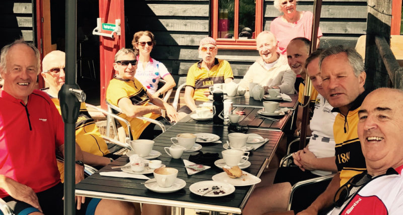 We might have been the tortoises, but the hares did just stay long enough to say their “Hi” s before their time trial home. But we must thank them for staying until we arrived, in order to save us the big table in the photo above.