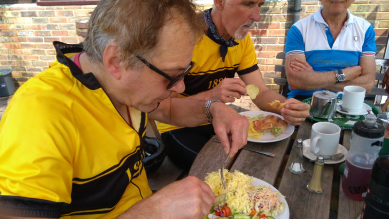 The later group – or ‘groupette’ turned up to entertain John & Meike. Back home, not quite as uneventful as Tom shed a chain under the the Nutfield underpass. Once we found the right chainbreaker all was quickly fixed and back home as the heat of the day ramped up a further notch: 32.50 miles at a creditable 13.88 mph.