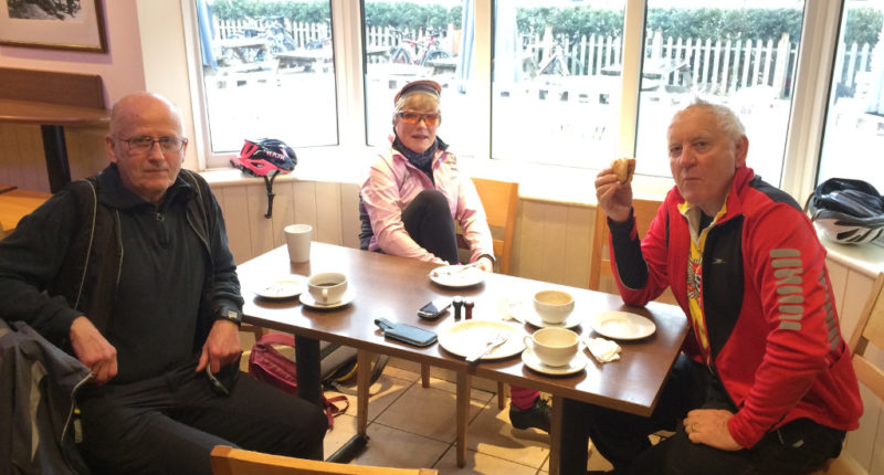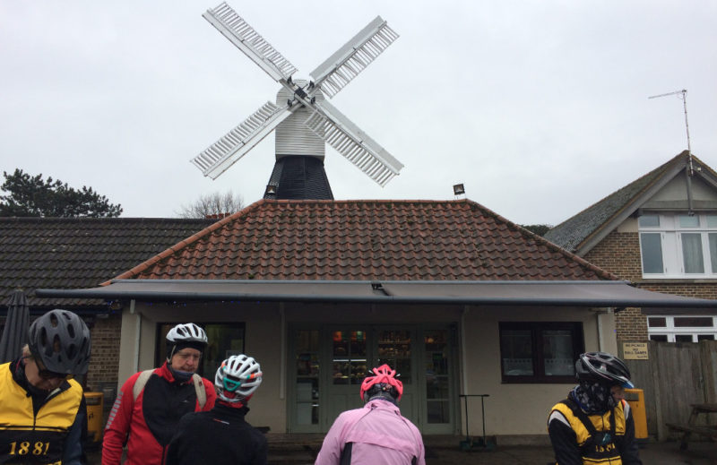 After briefly admiring Bob (the fireman)’s 28inch electrified mountain bike we set off, initially heading towards Croydon before we took back roads through to Sutton following bike route 77. Then we followed a series off road cycle paths that took us past the wetlands at The Hamptons, a couple of graffiti artists and on to Motspur Park. We continued through Raynes Park and Wimbledon Village to reach the Common and the Windmill Café. The Café was a most welcome chance to warm up and re-fuel.