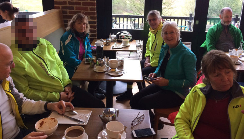 The lead group headed down Bug Hill and then up the long drag of Lunghurst Road (or should it be Lung Hurt Road?) up to Woldingham which was shrouded in fog. We then descended the Downs via Tandridge Hill Lane into Tandridge and then followed a convoluted route to Chartwell via Merle Common, Itching Wood Common and Crockham Hill. Crockham Hill lived up to its name with a steep ascent followed by a steady drag of a hill up to Chartwell. At first I thought it was closed and that I would definitely be strung up but luckily it was just the house and grounds that were closed not the café. Phew! We all felt we had earned a coffee break, except for Barry who wanted to do some extra endurance training and set off back into the mist!