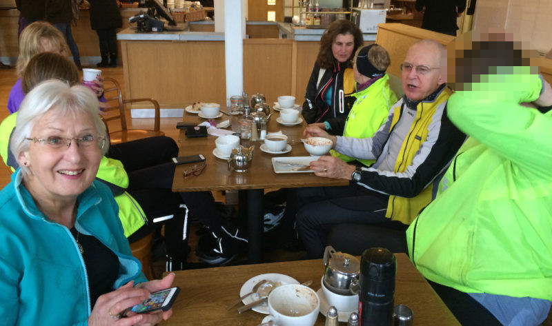 It was a grey morning but warmer than recent days with no threat of ice for a change. The 9:30 and 10:00 rides were combined due to illness. Hope Peter recovers soon!