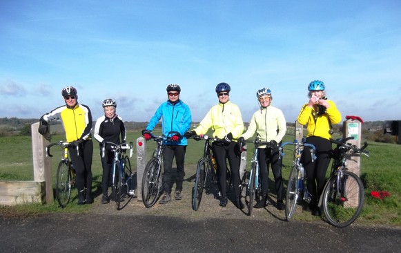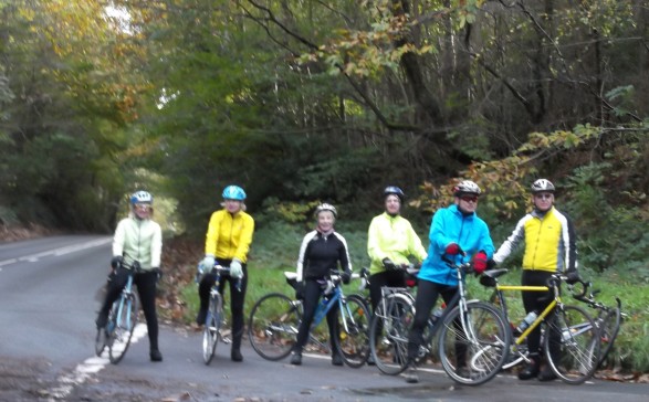 Glorious sunshine returned for the last of October’s Tuesday Rides. We stopped to admire the view and catch our breathe after the climb to the top of Farthing Downs. This brief stop was fortunate for Ewa, who faffing about as she put it, missed the 10 o’clock lift off from Tesco but caught us up in time for this pretty picture!