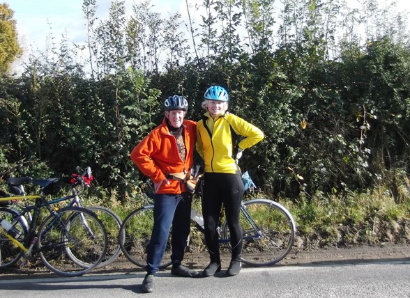 Making the most of the sunshine I led them on such a circuitous route that I even got lost myself! But nobody noticed as we made an unintended circuit of Redhill Aerodrome. It did however provide an opportunity to test Ewa’s memory. Could she remember where, 10 or more years ago, I had helped her to mend a puncture on a cold, winter’s Sunday Ride?