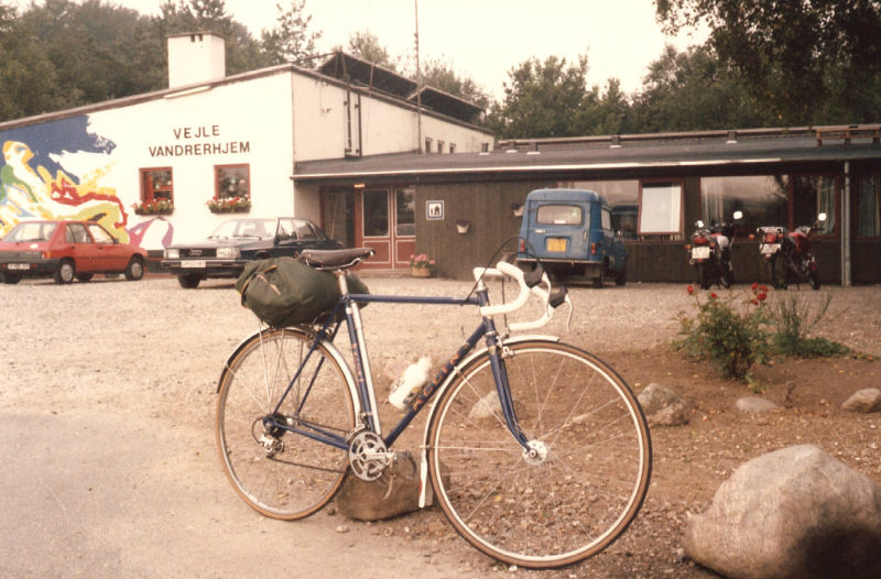 Feeling somewhat tired after about 75 miles, on the outskirts of Vejle I was greatly cheered to see the youth hostel sign at the side of the road. A man cutting his hedge directed me the last kilometre and soon I was undoing the saddlebag straps and putting the Allin to bed for the night.