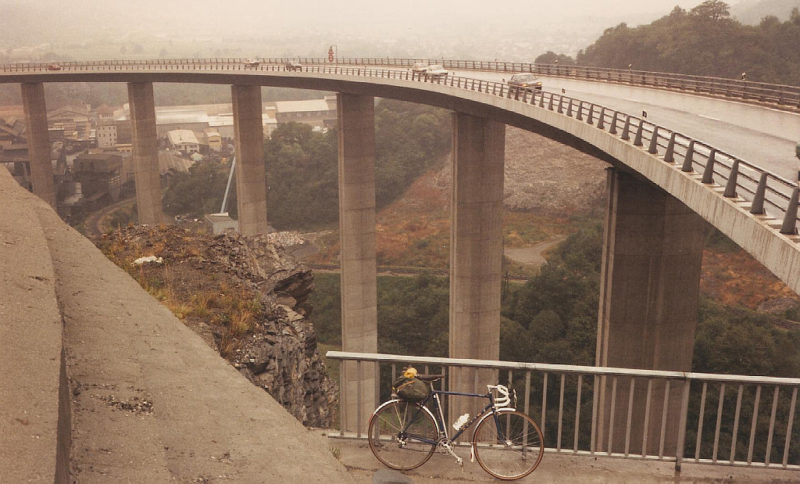 The gradient became steeper and the temperature dropped as I climbed. I didn’t mind that, as I hated sweat dripping off me in the heat. On my right appeared a dam and large lake. I rode on into a tunnel, very dimly lit, and found the reverberation of motor traffic quite unnerving. After what seemed like ages I emerged into sunshine again, the tunnel being about four kilometres long.